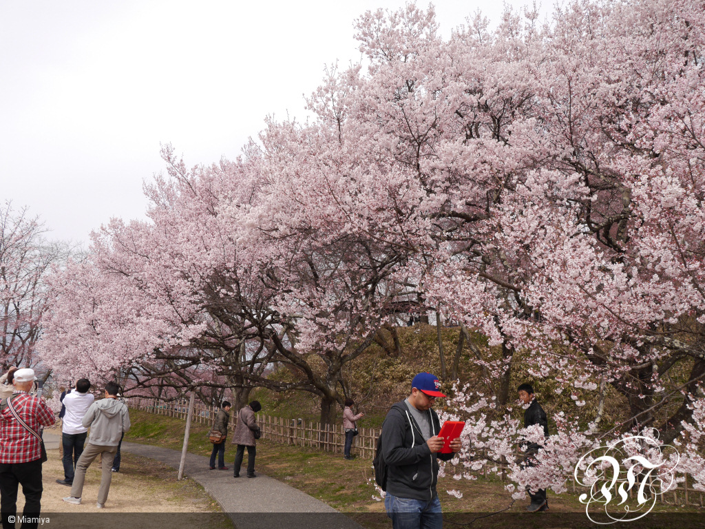 高遠城址公園獨有品種~小彼岸櫻。彼岸在日文指春分、秋分、及春分秋分前後各三天,一年中這14天稱為彼岸。開花期在春天彼岸期,故取名為小彼岸。秋天的時候,小彼岸櫻的葉子會變紅唷!高遠城址公園櫻花樹齡超過130年,盛開的時候非常漂亮。入園門票要500日圓。